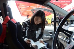 コ・ドライバー歴3回目にして全日本デビューの当社女性メカニック山田も、必至でペースノートを読み上げます。