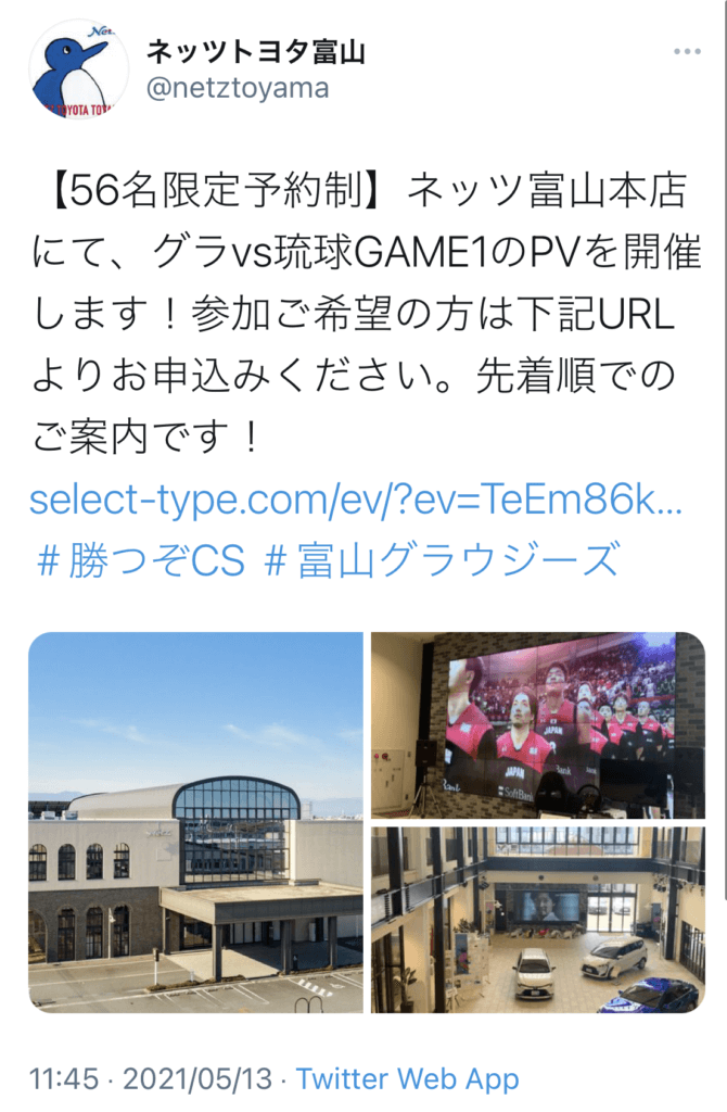 パブリックビューイングをネッツトヨタ富山 本店にて実施しました。