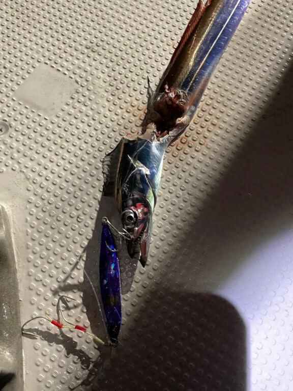 釣れたタチウオの背中部分が悲惨なことに( ゚Д゚)