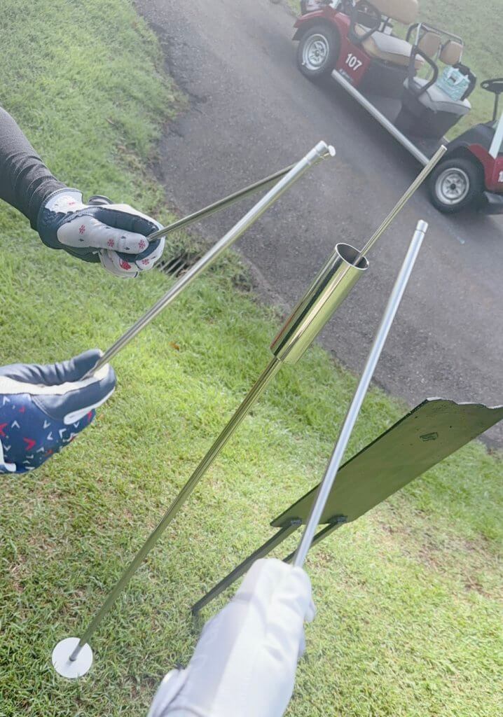 スタートにティーショットを打つ順番を決める棒「スタート抽選器」を引けたことに感動(笑)