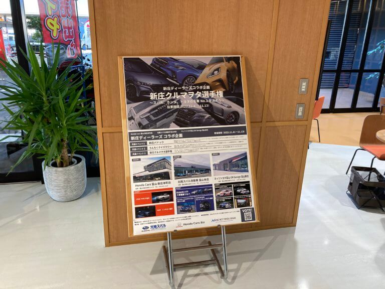 11月4日(金)~13日(日)の期間、「新庄デイーラーズ コラボ企画」と題して、〔Honda Cars 富山新庄本町店〕〔 北陸スバル自動車 富山本店〕〔ネッツトヨタ富山 GR Garage富山新庄〕の3社合同企画を開催しております。