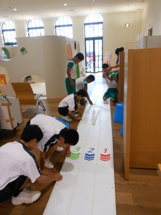 昨日それぞれ自分達でつくったモックカーでレース競争です!