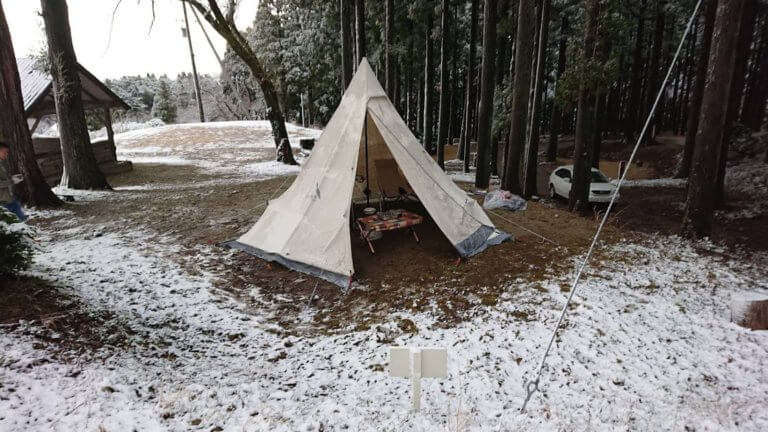 雪が積もってる中での冬キャンプです(^^)/