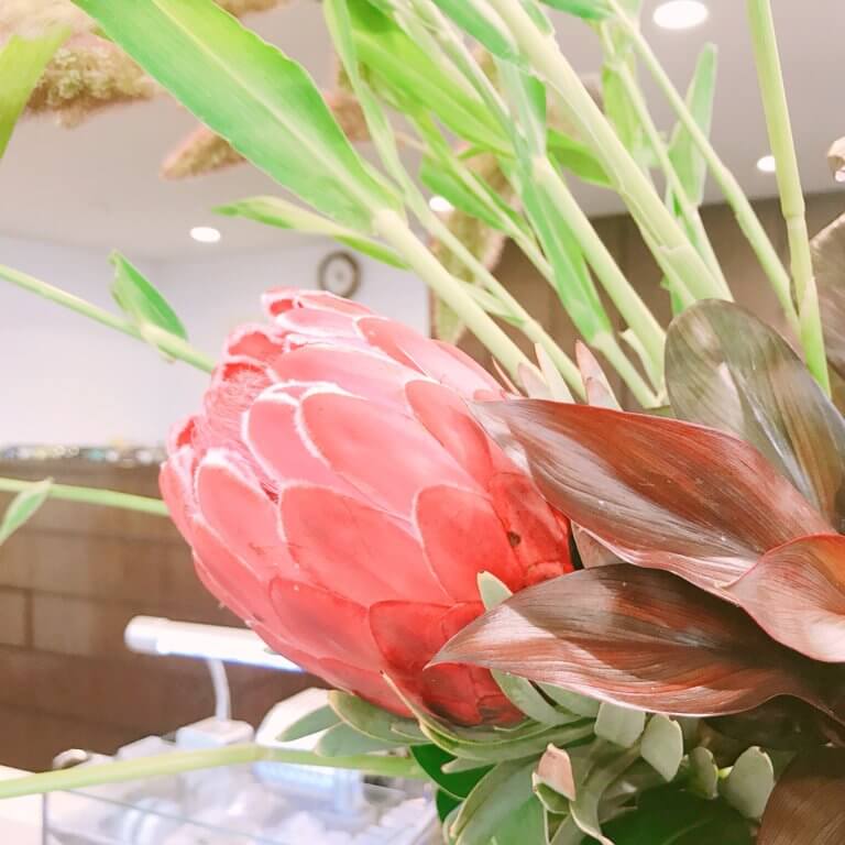 先々週も登場したプロテアビーナスが中央を華やかに彩っています♡