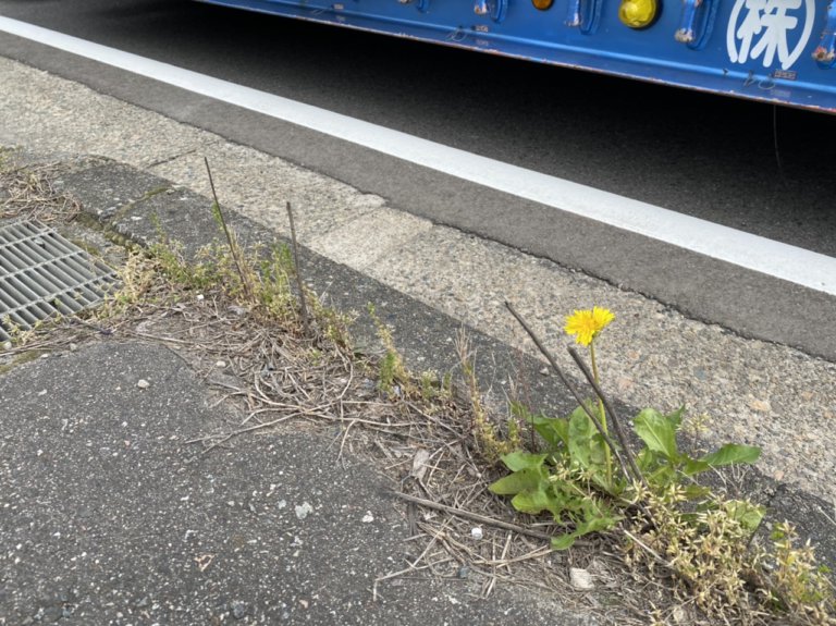 道路沿いに可愛く咲いていたタンポポやお花を見ながらほっこりした気分でのゴミ拾い(笑)