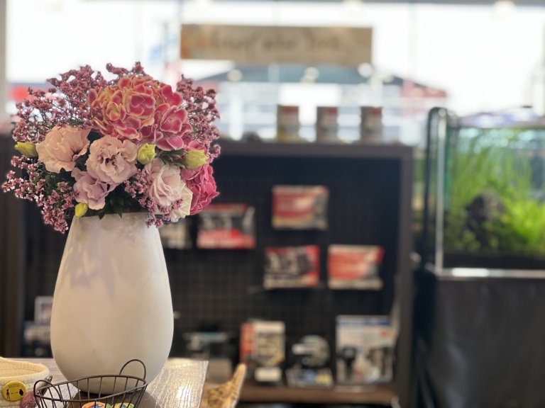 今週はピンク色が映えて店内をとっても可愛く飾ってくれています(o^^o)