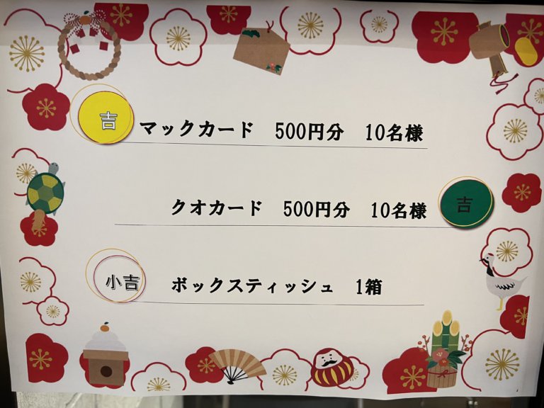 アンケートにお答えいただいたお客様に損なし!のおみくじ大抽選会🥰