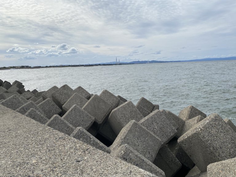 幸いルアーを投げたい方向は追い風だったので釣りはできると思いとりあえずエギを投げてみました😶