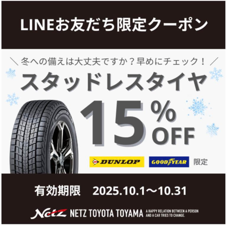 そして今月10月1日から10月31日までの1ヶ月間、ネッツトヨタ富山LINEお友だち限定で、クーポンが発行されています!