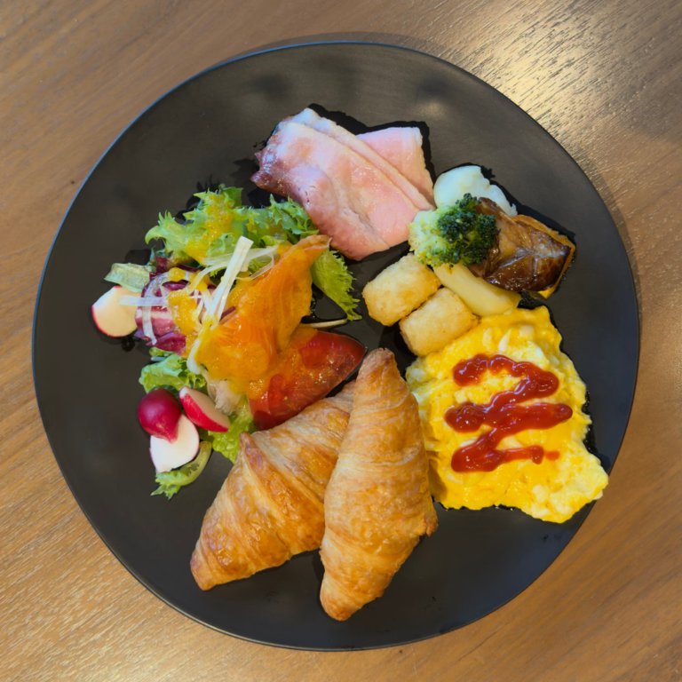 朝はビュッフェスタイル🌽🧅🍠🥐🥖🍳🧈🧀