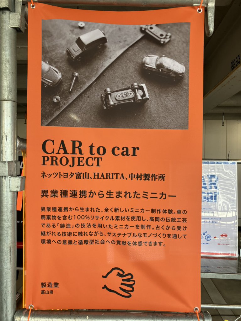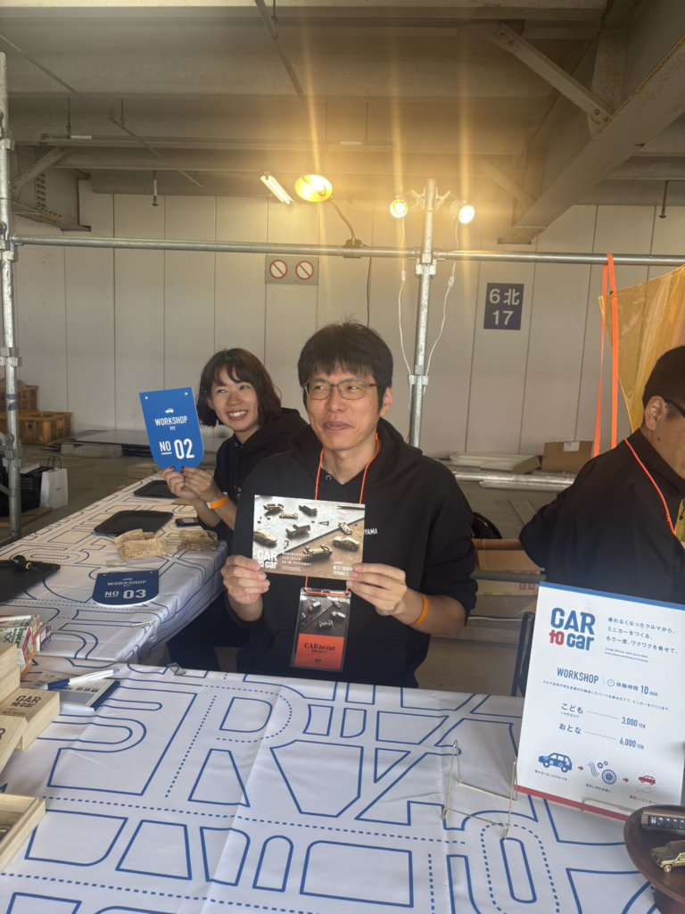 (株)HARITA様 (有)中村製作者様と共同で、廃材からミニカーを作成体験していただける、イベントブースをやってます!