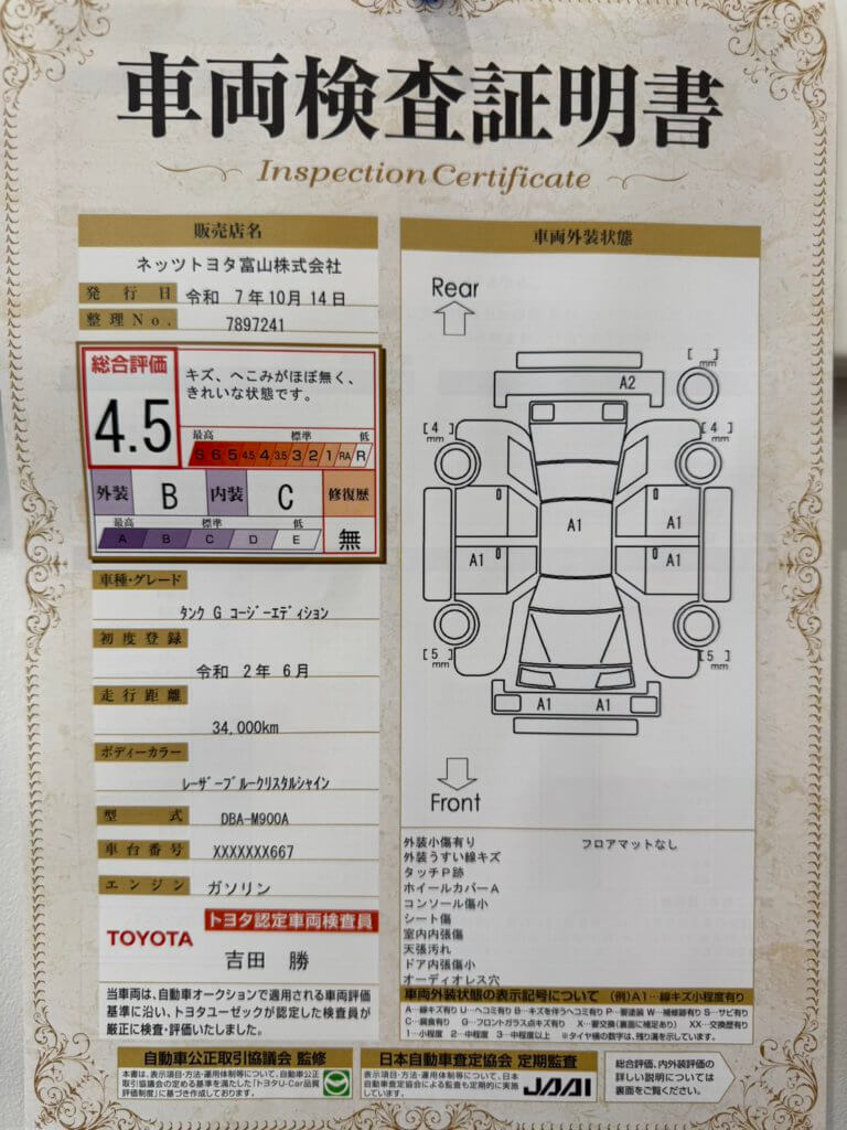 R02 タンクGコーディーエディション / 143.4万円(支払総額)