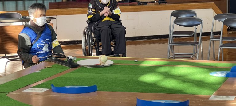 障がいのある子どもたちにも野球の楽しさを伝える為に作られた巨大野球盤を使ったスポーツのことで、障がいの有無・年齢・性別に関わらず、みんなが楽しめるように作られました