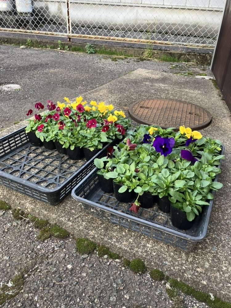 雪が降るまでもうそんなに日がないかもしれませんが、もう少しお花が咲いたら店舗の前に出してお客様に見えるところに置きたいと思います。🌷