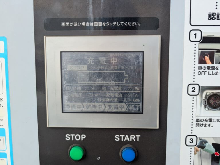 どうやって充電したらよいのか充電スポット記載の説明書きを読みながら四苦八苦!