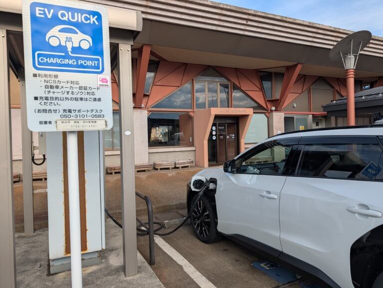 道の駅がリニューアルしたので、EV急速充電スポットもリニューアルしたかなあと期待したのですが、残念!