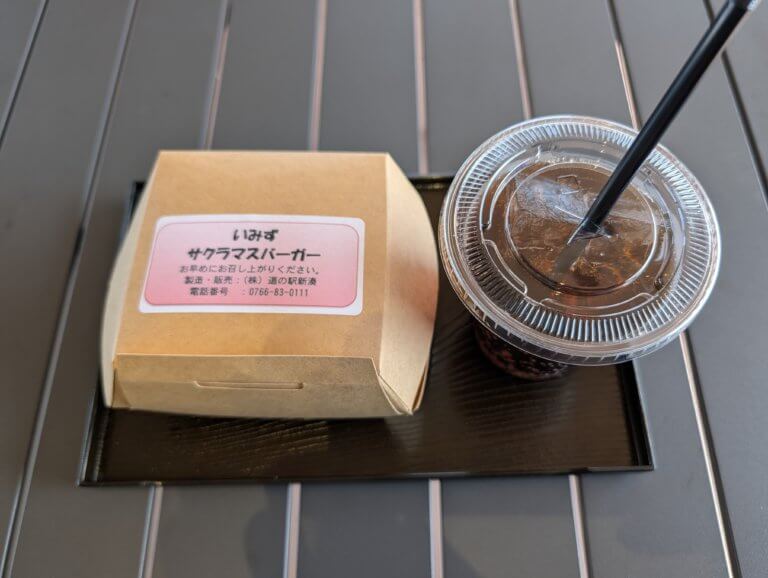 私はフードコートの「いみずCAFE」メニューから「さくらますバーガー」をチョイス!