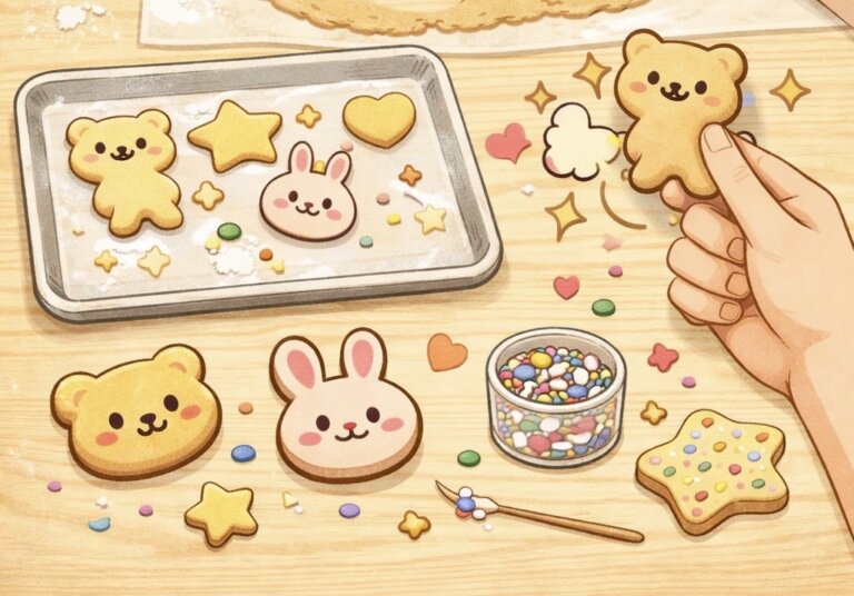お菓子の絵の形を割らずに少しずつ抜きとります