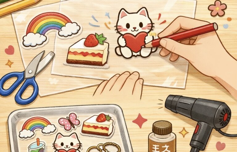 - 1.プラバンに油性ペンや色鉛筆で好みの絵を描く