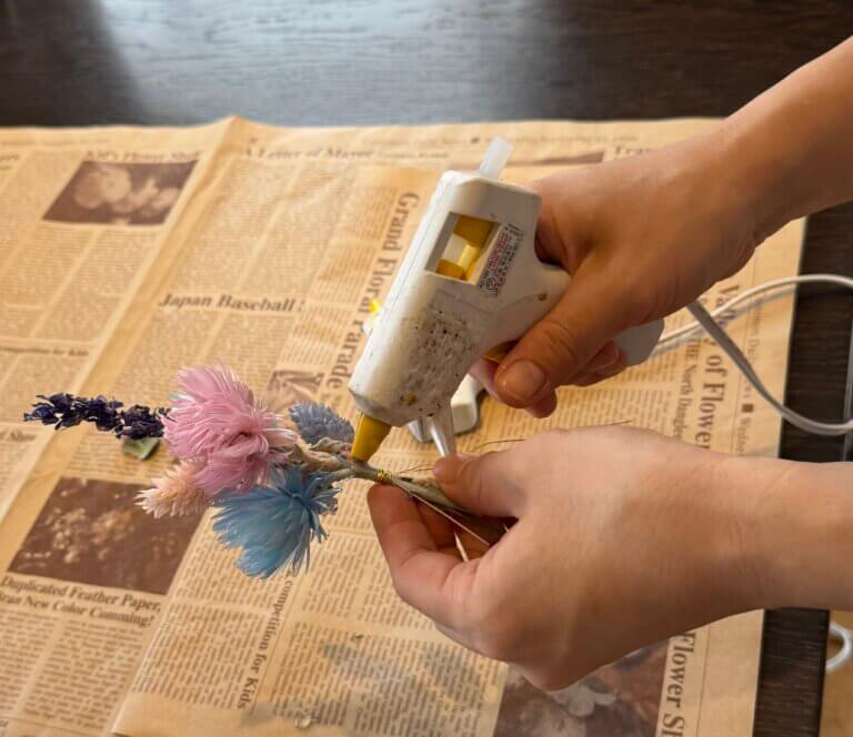 グルーガンを使い接着し、キーホルダーをつけて完成👏👏