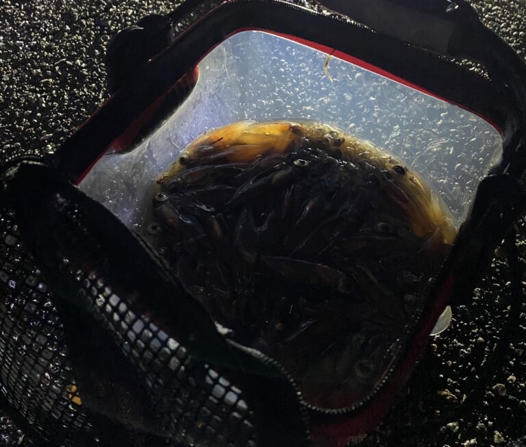 1匹目を見つけてからはポツポツと湧き始めてひと掬いで何匹か救える程度に😄