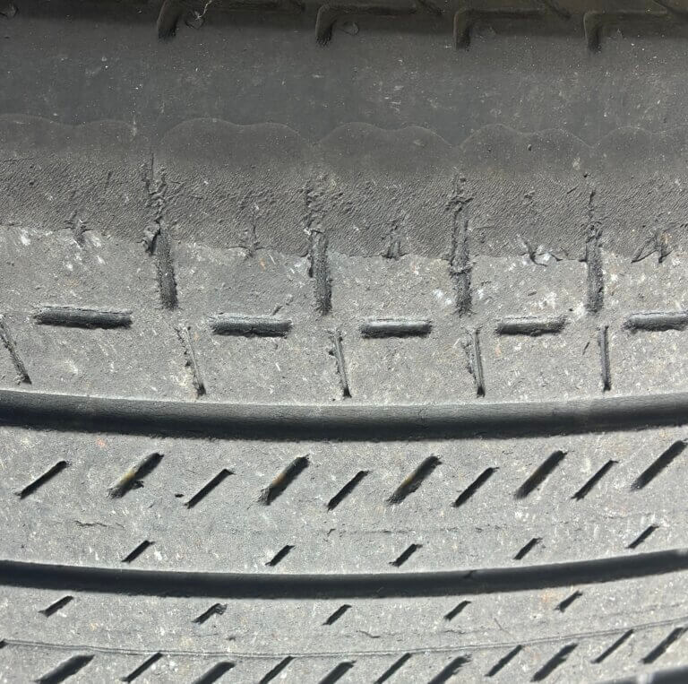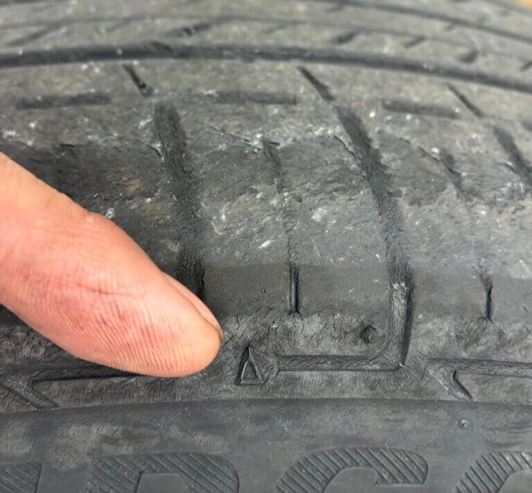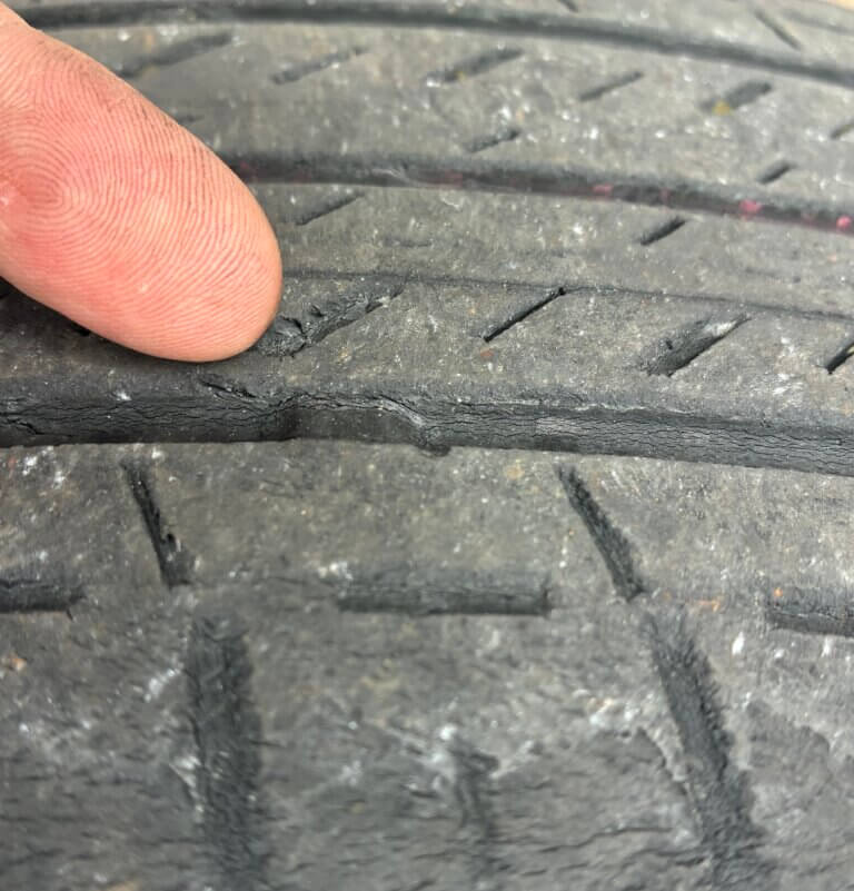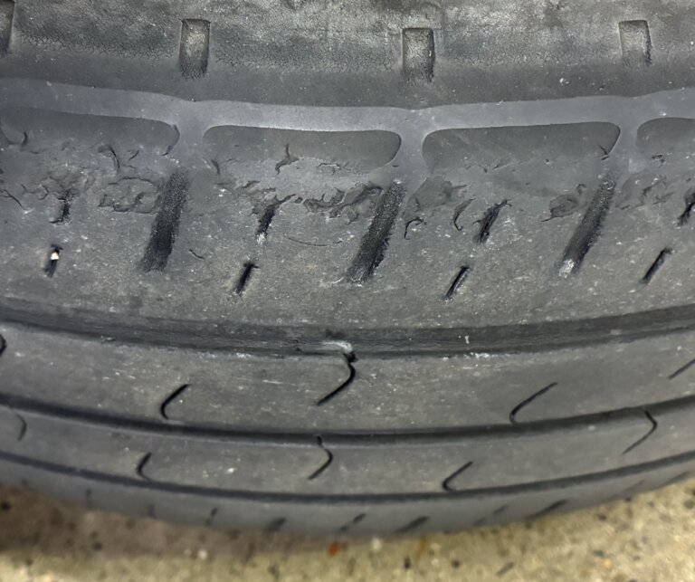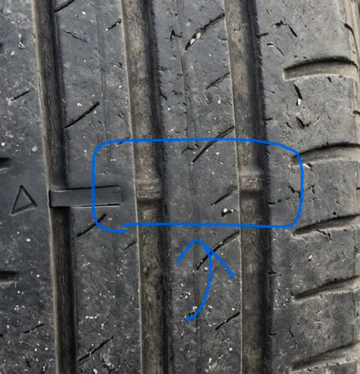こちらはタイヤの外側がすり減っていて交換が必要なタイヤになります💦