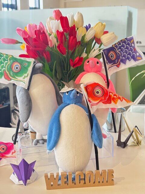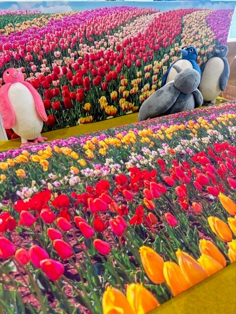 店内には満開のチューリップを楽しむアミーたちが🐧