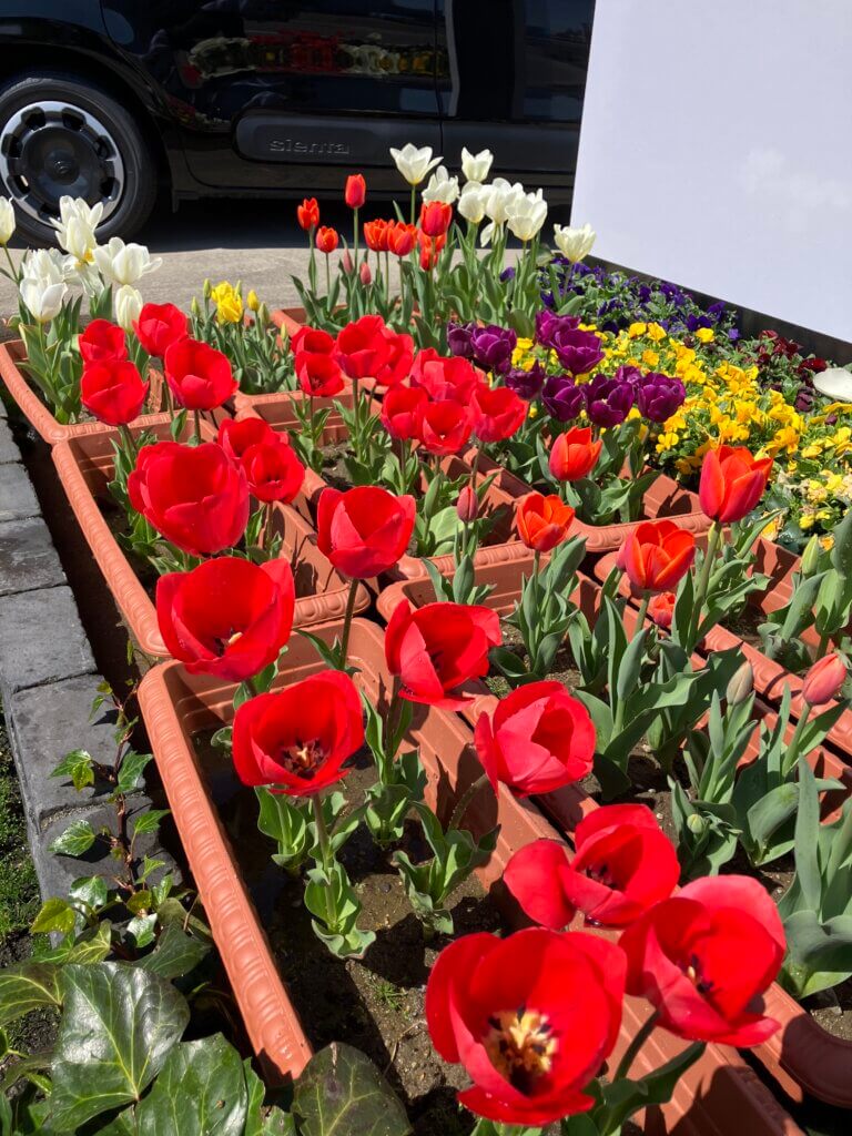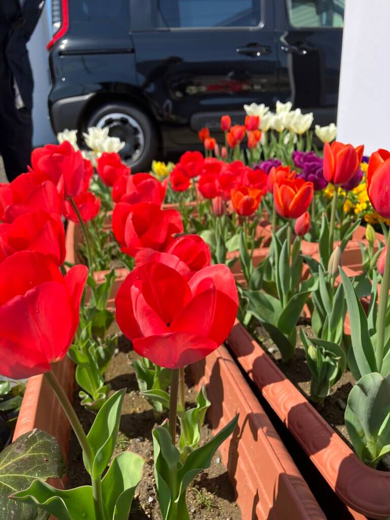 あちらほどの素晴らしいことはできませんが、ネッツ高岡西のチューリップもぜひよければご覧ください!🤩