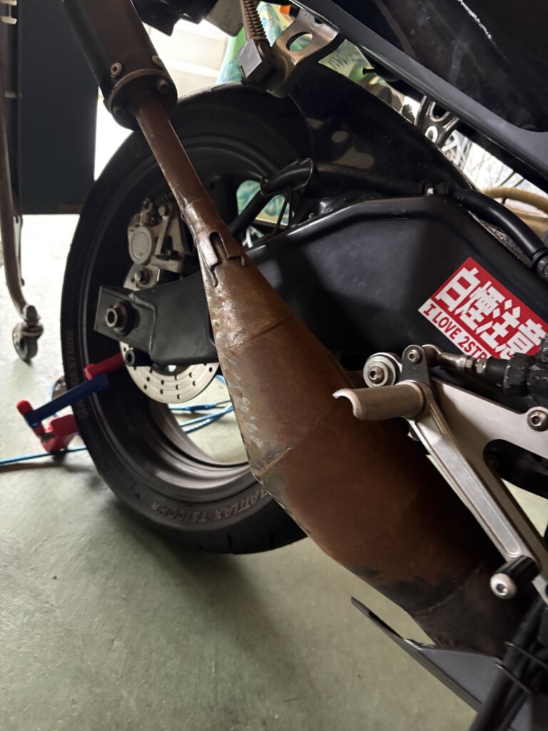 バイクのマフラーも塩カルまみれになってしまい、サビサビになってしまいました。