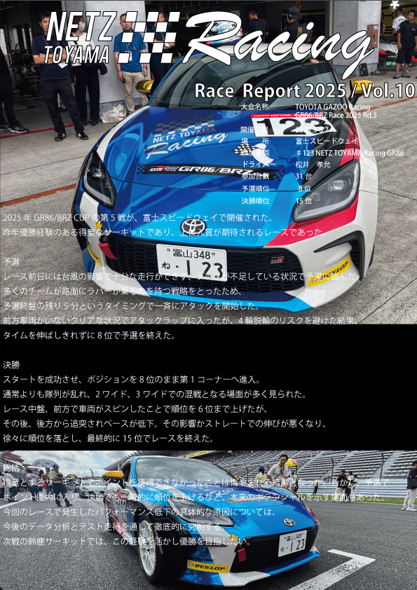 NETZ TOYAMA Racing 参戦レポート2025 Vol.10
