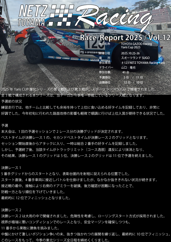 NETZ TOYAMA Racing 参戦レポート2025 Vol.12