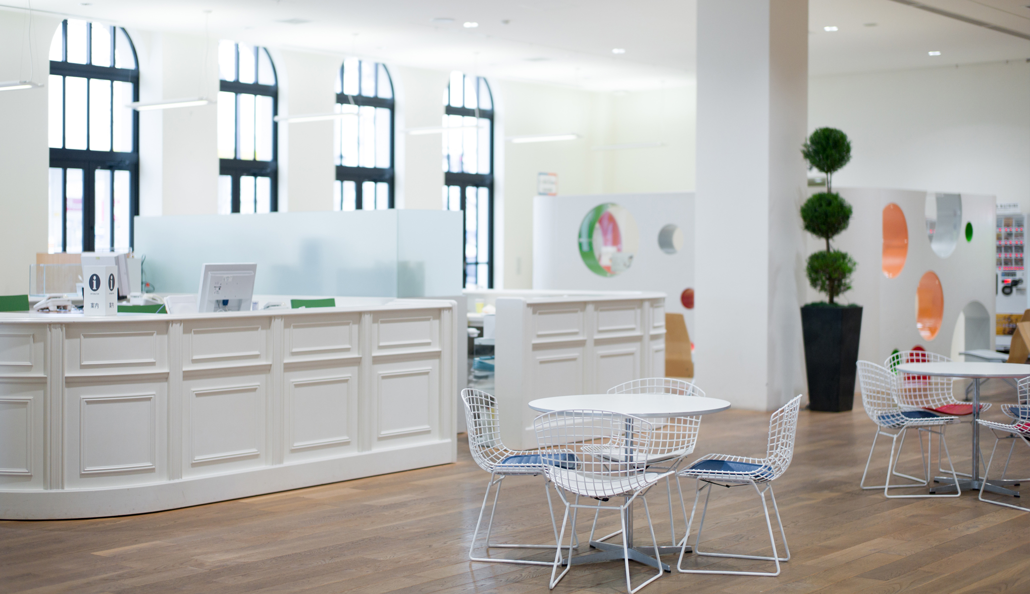 高い天井と石畳のフロアが印象的なコンコースは、人々が行きかうヨーロッパの駅がモチーフ。ここは、ただ車を紹介するだけでなく人々が集いつながり合う、新しいディーラーのカタチです。キッズコーナー完備でご家族連れでも気兼ねなく車選びが出来、さらにエンジニアの作業風景を眺められる場所もございます。車選びのさらなるワクワクやドキドキをご体感ください。